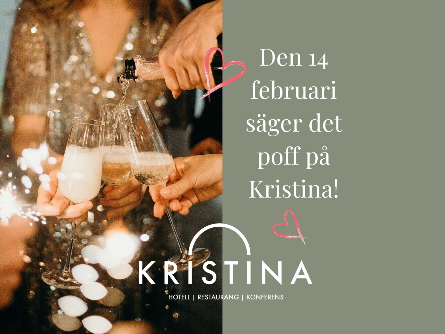 På Alla hjärtans dag välkomnar vi er till en 4-rätters middag där champagne sätter smakerna i allt från fördrinksmingel till dessert. Till fördrink serveras champagne med tilltugg kl 19.30 - hjärtligt välkomna till en bubbligt lyxig kväll på Kristina! Er festmiddag kommer sen innehålla allt från hummer, löjrom och kalv till passionsfrukt. Till alla fyra rätter serveras champagne...poff!!!!